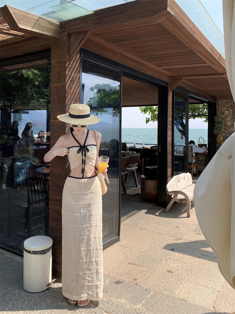 RMS25881 Hollow Out Monokini With Gauze Dress